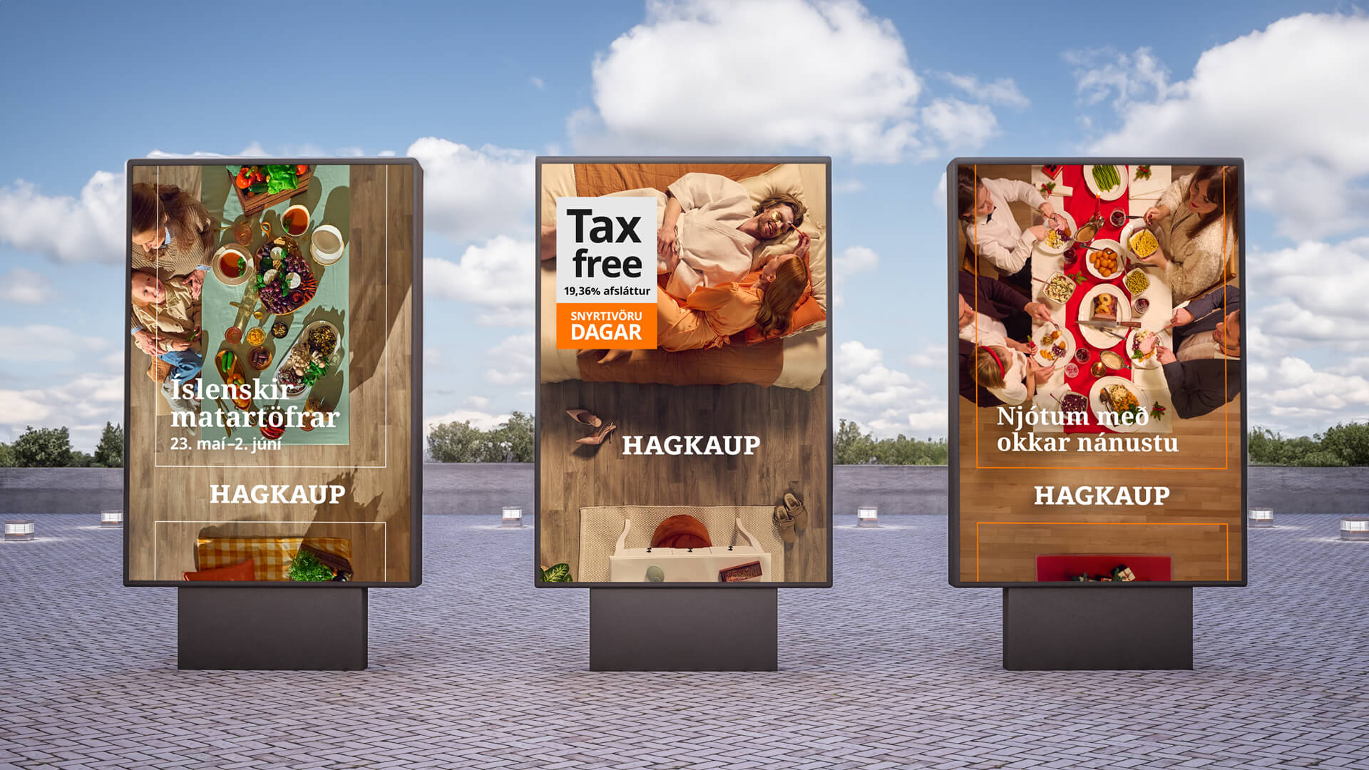 Undanfarið höfum við unnið að því að uppfæra allt markaðsefni Hagkaups, sem birtst hefur í öllum miðlum síðustu vikur og mánuði. Nýja markaðsefnið einkennist af léttleika, gleði, fallegum litum og notalegum samverustundum með fjölskyldunni – því í Hagkaup snýst allt um að gera vel við sig og sína. Svo hnýtum við slaufu á allt hreyfða efnið með því að snúa myndavélinni heilan hring í kringum aðstæðurnar og fylgjast með fólkinu ofan frá í lokin.